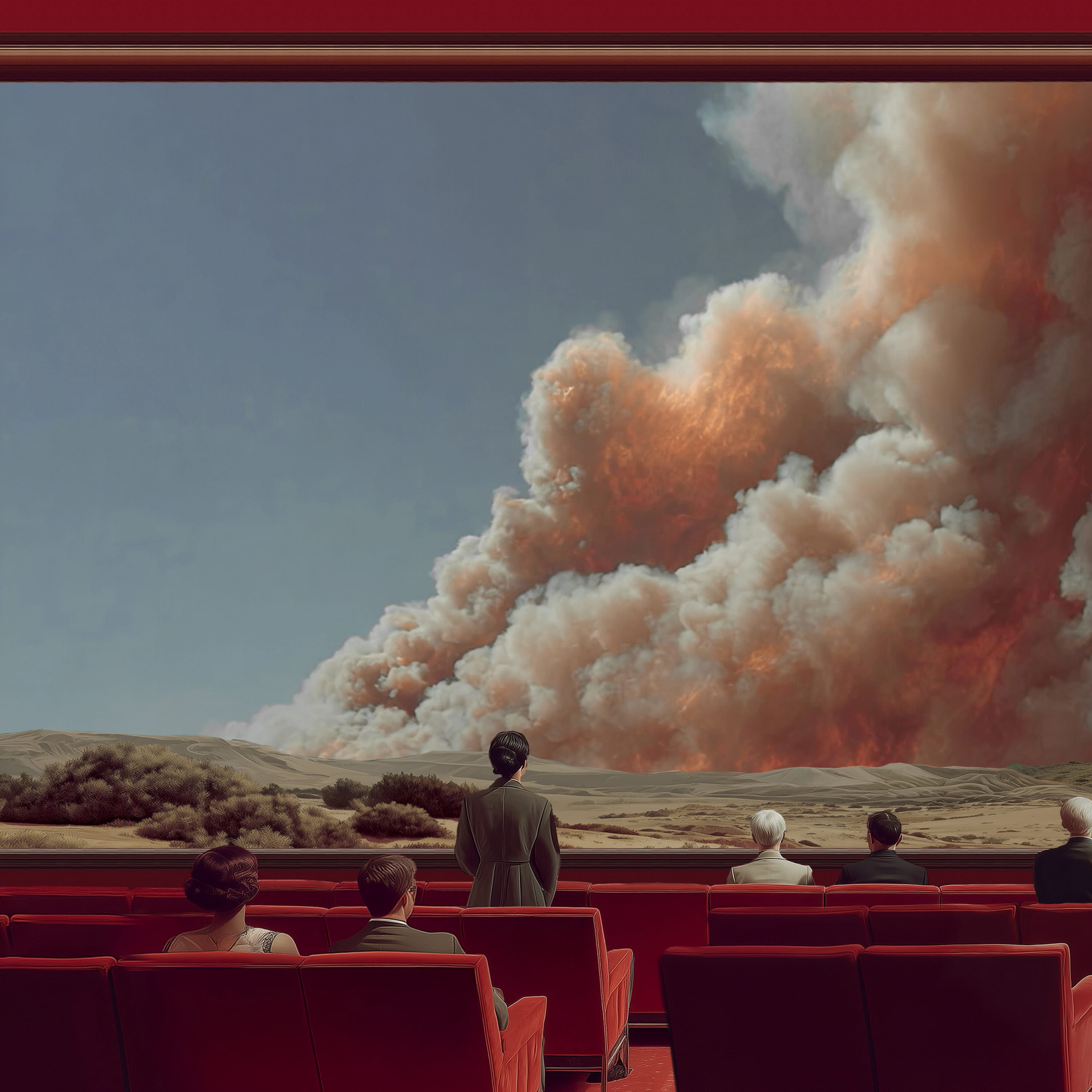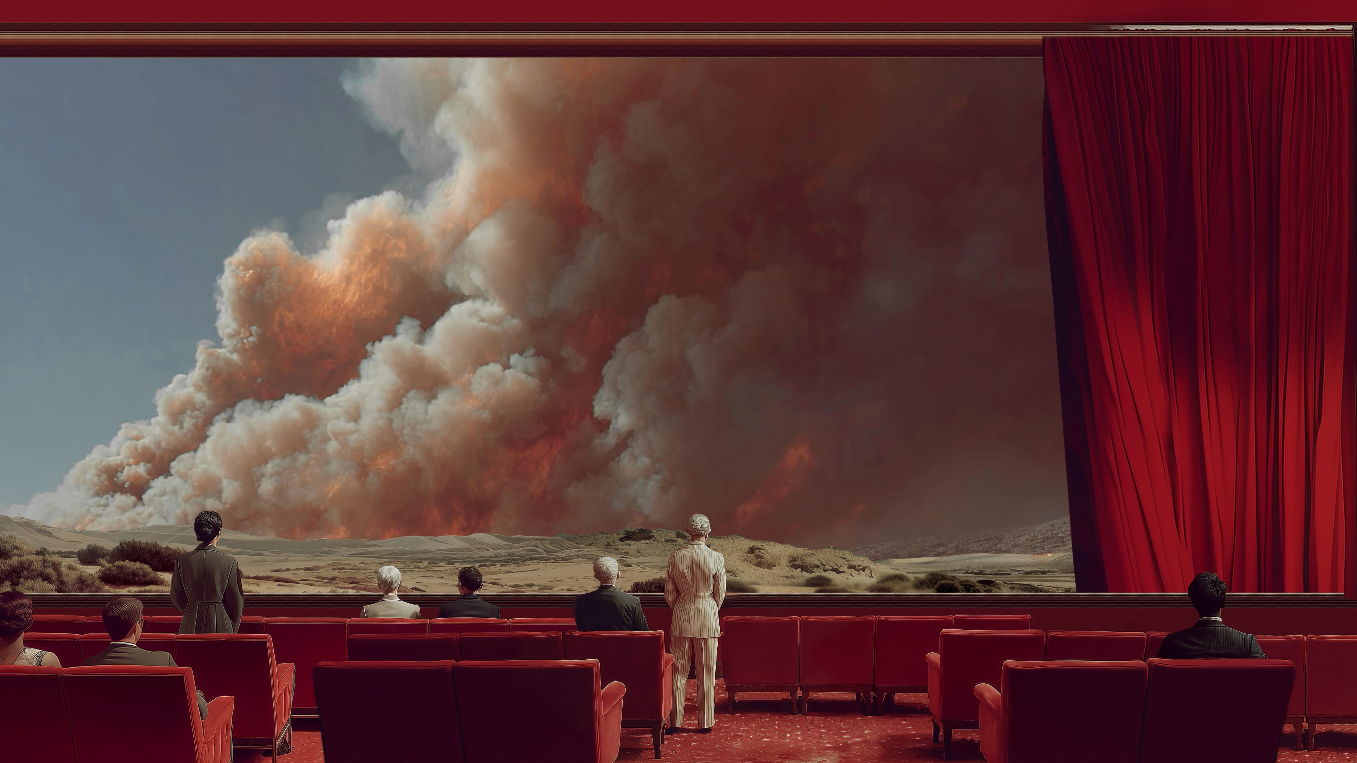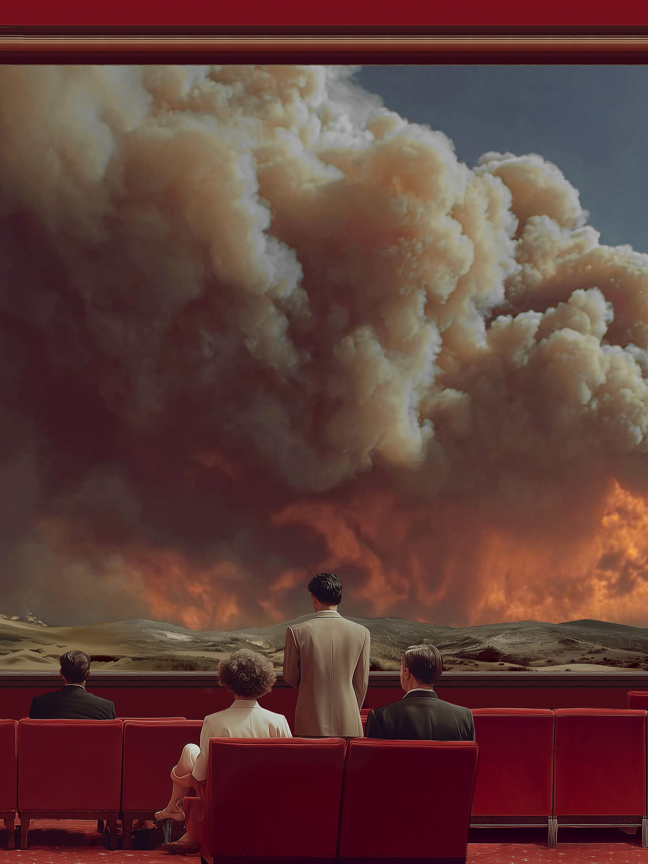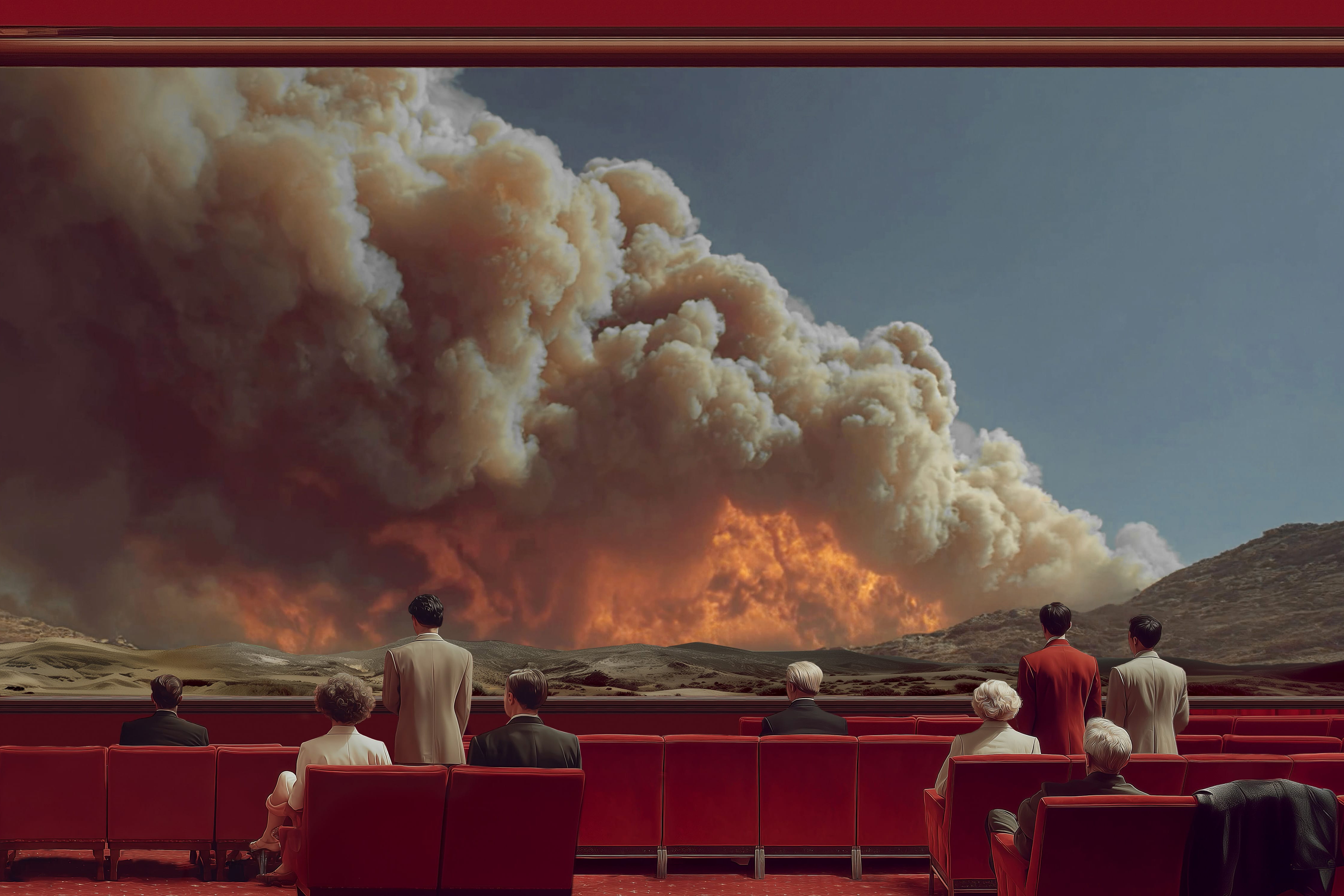 Two of the major challenges we face in the 21st century are global warming and artificial intelligence. The exhibition Facing the Challenge echoes these critical issues through an immersive installation by emerging French artist Louis-Paul Caron. This installation is a continuation of his Fires series, which places the protagonists in situations ranging from carefree to stunned. We recall of the words spoken by French President Jacques Chirac at the 2002 Earth Summit in Johannesburg: ‘Our house is burning and we are looking the other way’. A quarter of a century later, there is no longer any doubt about our collective responsibility for climate change. We feel helpless in the face of fires that have become megafires. To prevent them from happening again, and more generally to deal with natural disasters, we need to focus on the causes before managing the effects. Starting by finally acting and stopping looking away.