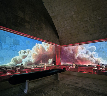 HIGH RESOLUTION IMAGES ( 1x1, 3x2, 3x4, 16x9) PHOTOGRAPHS ( 1x1, 3x2, 3x4, 16x9) : Louis-Paul Caron, Fires series, 2026, immersive installation, variable dimensions, generative artificial intelligence, detail. Malta Biennale, French Pavilion, Fort St Elmo in Valletta, 2026.